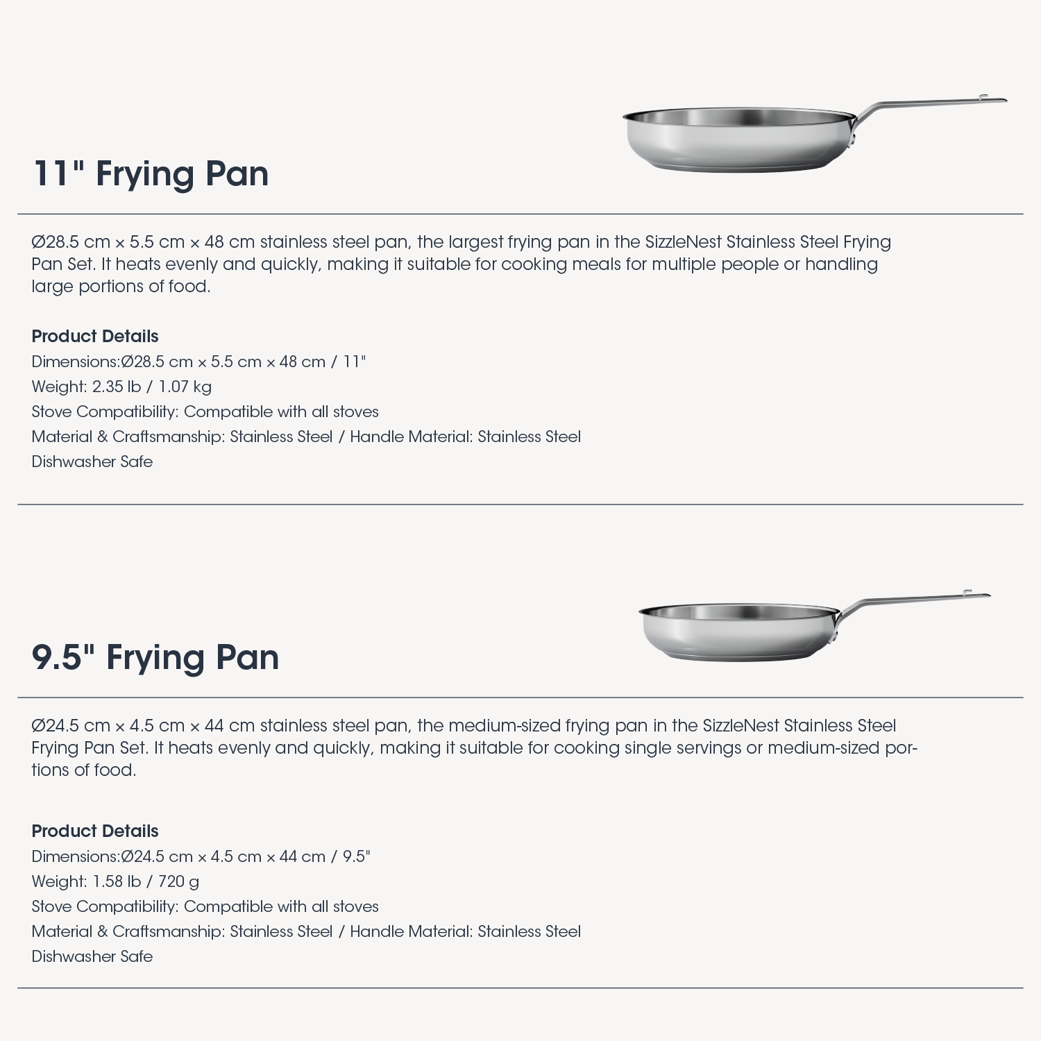 11" Frying Pan: Ø28.5 cm × 5.5 cm × 48 cm / material: Stainless Steel