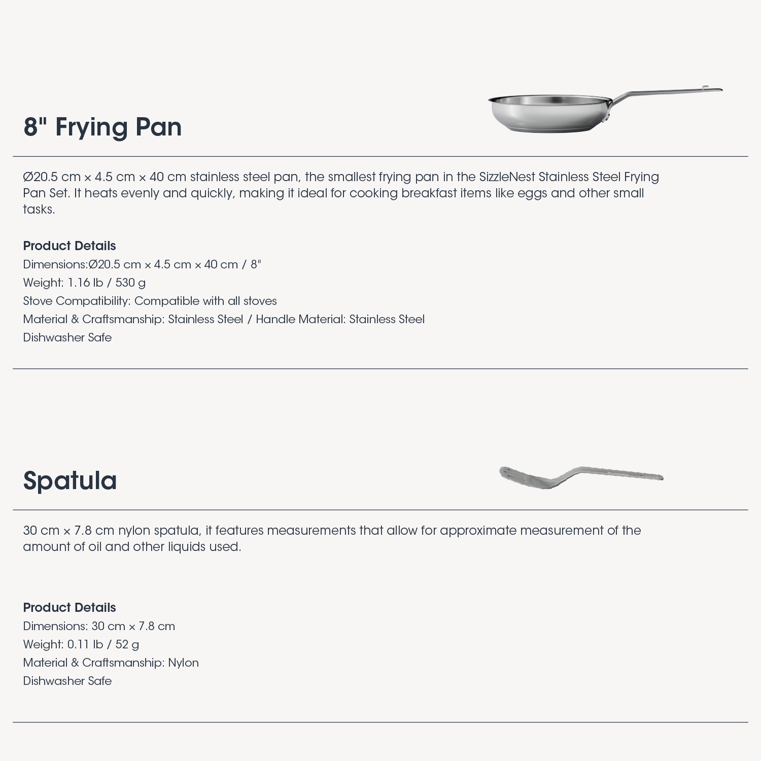 8" Frying Pan: Ø20.5 cm × 4.5 cm × 40 cm / material: Stainless Steel
